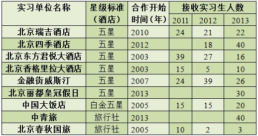 ² 学校与企业相结合:为保证学生的实习与就业,与北京众多知名酒店、旅游企业建立密切的合作关系,真正实现“订单式培养”的校企合作教学模式。